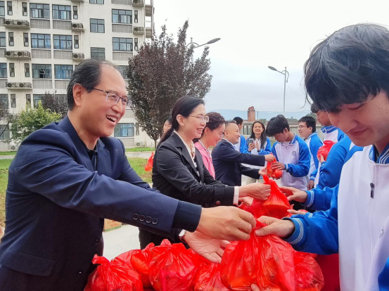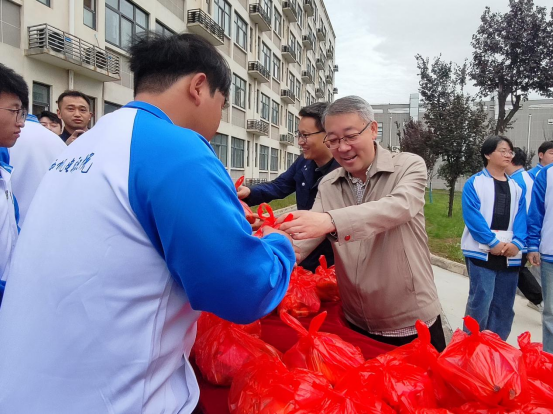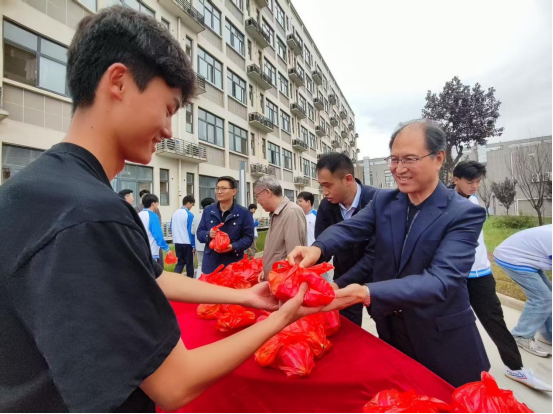 秋风送爽迎华诞,丹桂飘香庆中秋。在国庆与中秋双节来临之际,为切实保障留校学生度过一个温馨、充实的假期,9月30日,智能制造学院组织开展留校学生慰问活动。陕西机电职业职业技术学院党委书记伊逊智、党委副书记张琴、学生处处长王建斌,智能制造学院院长马海彦、党总支书记薛媛丽、副院长孙钊、各系部老师以及辅导员、班主任老师与留校学生齐聚一堂,以暖心关怀驱散思乡之情,让校园充满节日的浓浓暖意。