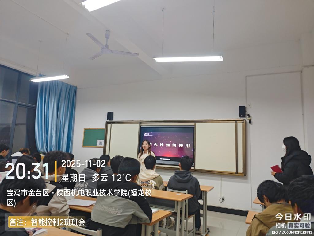 为深入贯彻落实校园消防安全工作要求,切实增强全院学生的消防安全意识、法治观念与应急处置能力,智能制造学院以“119消防宣传月”为契机,于2025年11月2日晚班会期间,组织各班级集中开展以“全民消防、生命至上——安全用火用电”为主题的班会活动。