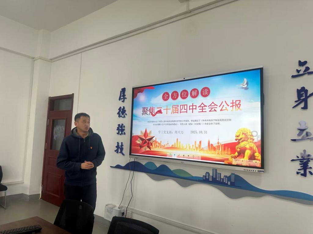 学工党支部以“党建 + 思政育人” 为抓手,将全会精神与智能制造学科特色深度融合。围绕全会提出的“建设现代化产业体系”“加快科技自立自强” 等战略部署,组织党员开展“价值引领与成长赋能双促进”专题研讨会,重点研讨如何将全会精神融入学生思想政治教育、如何对接产业需求优化学生培养路径。